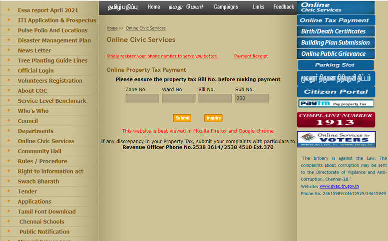 Property Tax In Chennai Chennai House Tax Calculator Payment Online